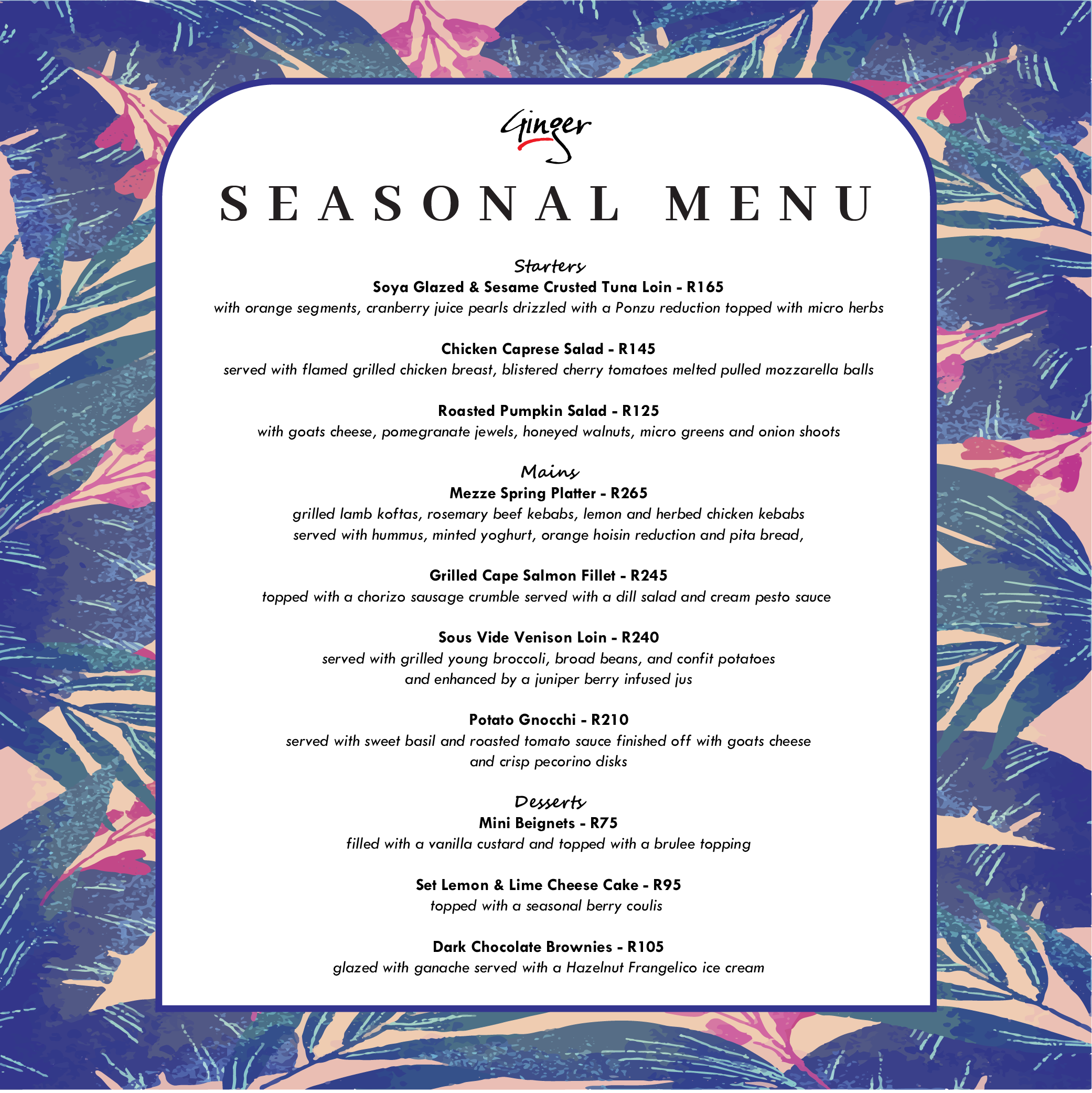 Seasonal Menu